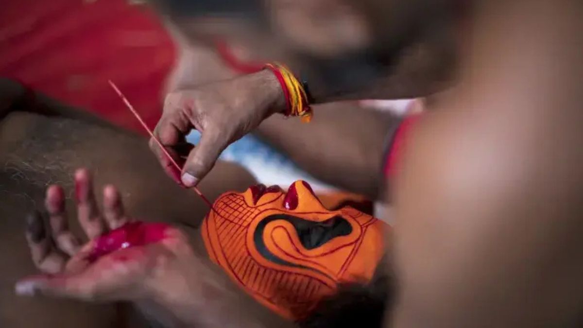 This transformation involves intense preparation. Performers observe periods of fasting, abstinence and mental discipline before the ritual. The process unfolds gradually, beginning with preliminary rites and moving into the application of intricate face painting using natural pigments.