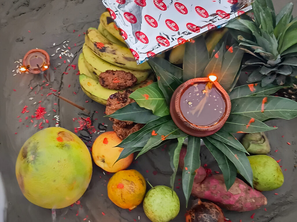 The third day, Sandhya Arghya, marks one of the most significant and visually enchanting days of the festival. Devotees gather along the riverbanks to make offerings to the setting sun. water, and mark the joyous conclusion of the festival.