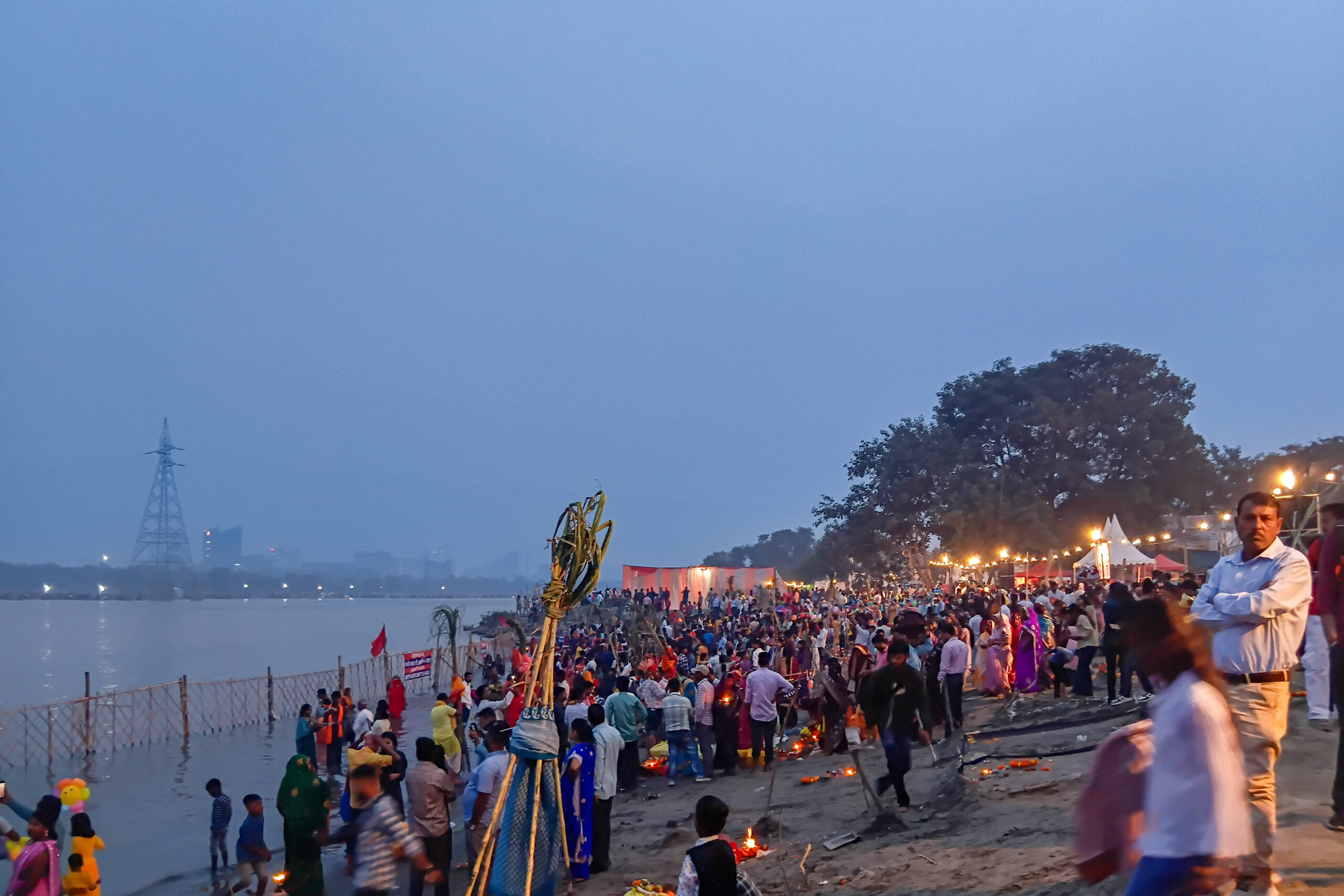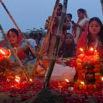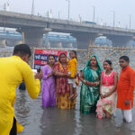 Thousands of persons, wrapped in festive clothes, carrying their offerings gathered along the riverbanks of the Yamuna Ghat to honour the Sun God and marked a renewed spirit of cultural togetherness.
