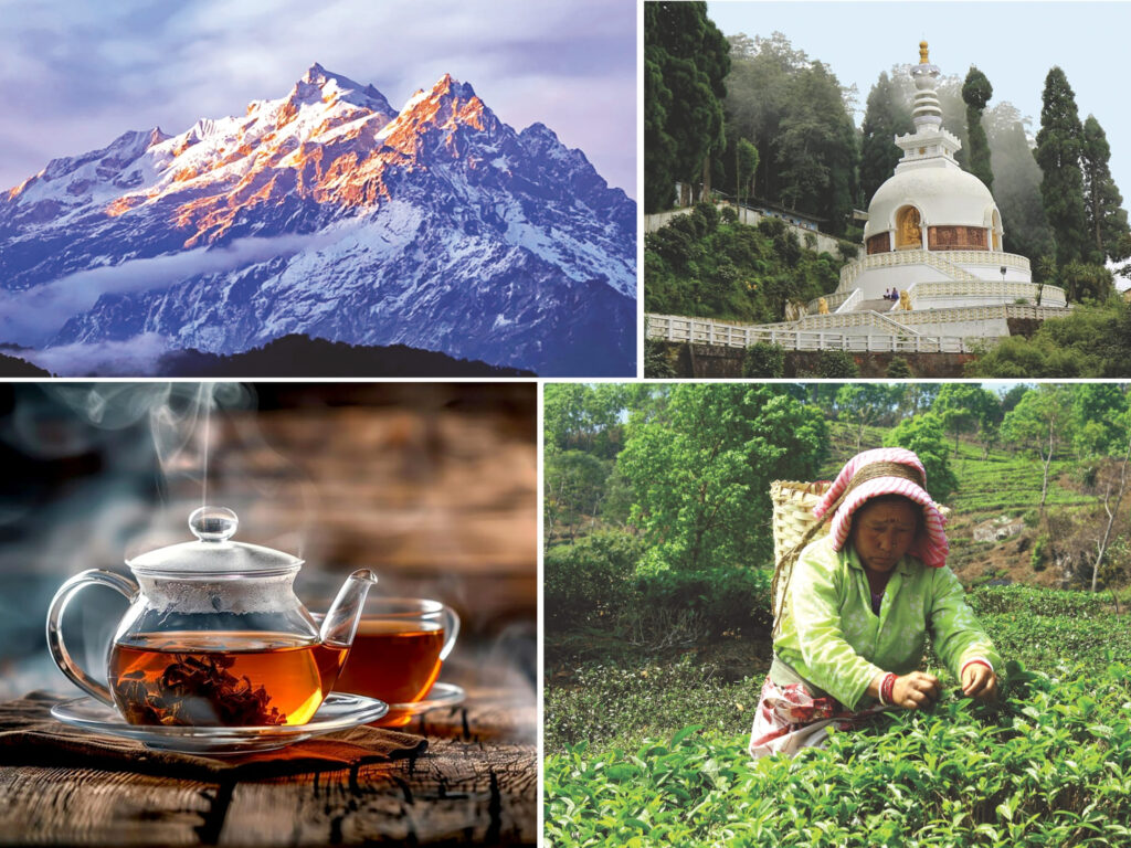 Darjeeling’s scenic hills dotted with tea gardens and a steaming pot of local brew