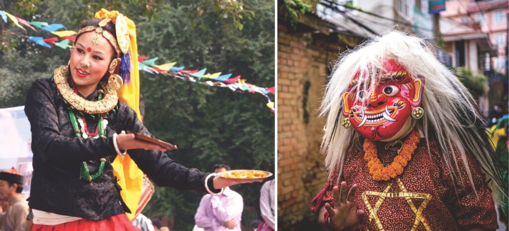 In Darjeeling, the deeply spiritual Tibetan opera Lhamo is a unique form of performance that blends music, dance, and drama, often performed during Tibetan New Year and other cultural festivals in Darjeeling. Another popular Tibetan performance art is the mask dance, performed by monks during religious festivals like Losar, meaning Tibetan New Year. These dances, featuring elaborate costumes and masks, represent deities, demons, and animals and are performed to ward off evil spirits.